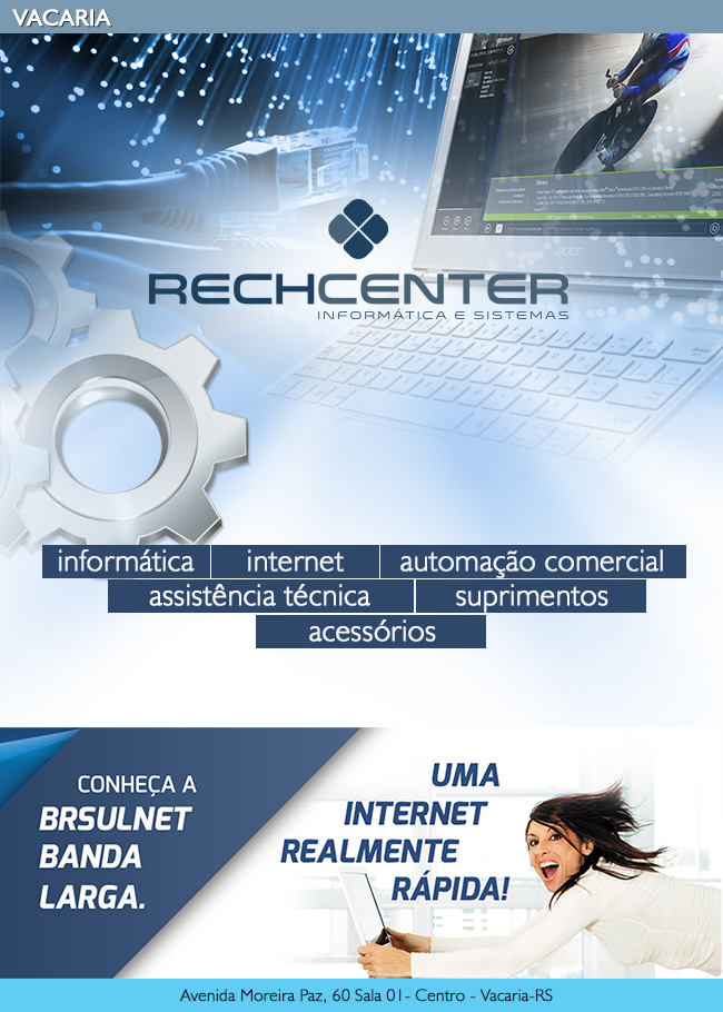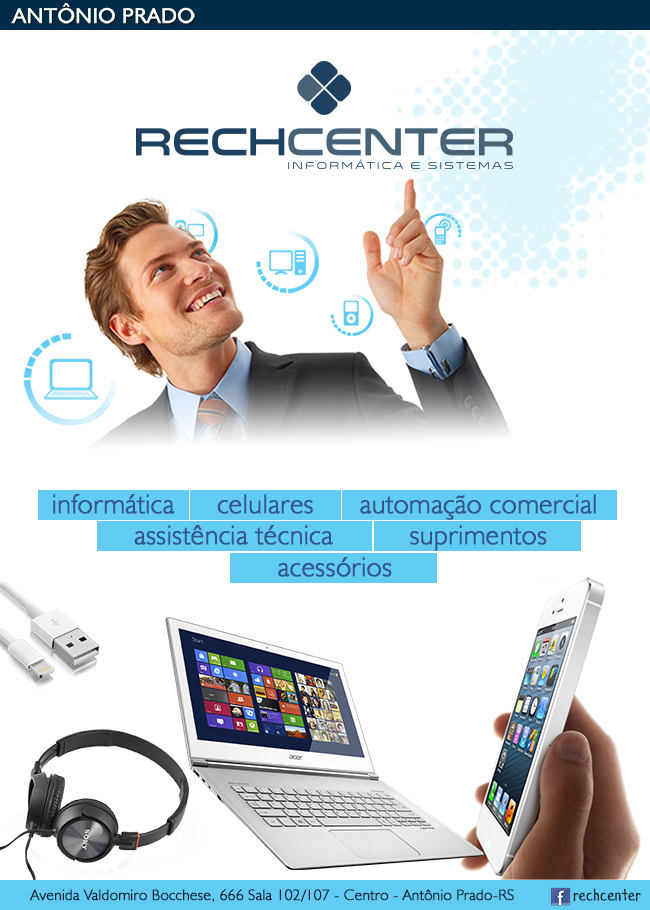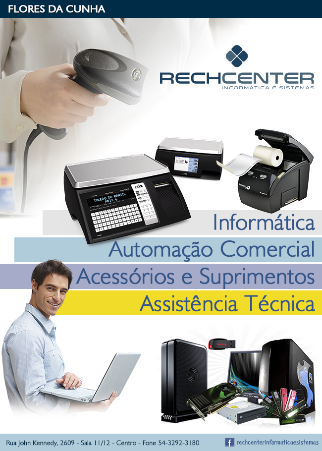 A Rech Center Informática está no mercado a 20 anos, contando com 3 lojas muito bem estruturadas nas cidades de Flores da Cunha, Antônio Prado e Vacaria.